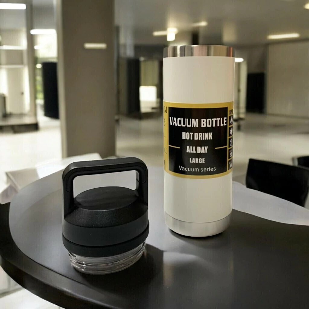 Doble pared de acero inoxidable con aislamiento al vacío, lo que permite que las bebidas se mantengan frías durante 12-24 horas o calientes durante 6-12 horas.