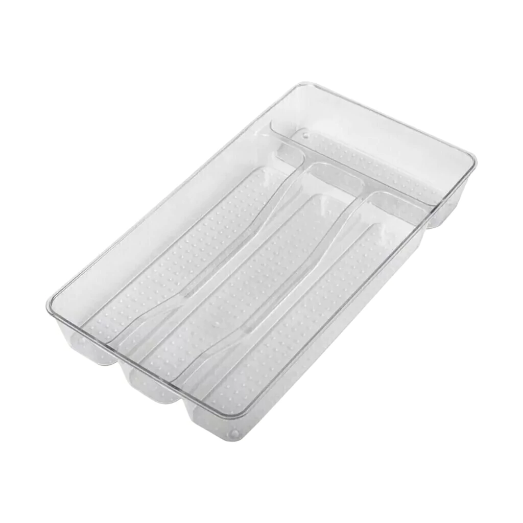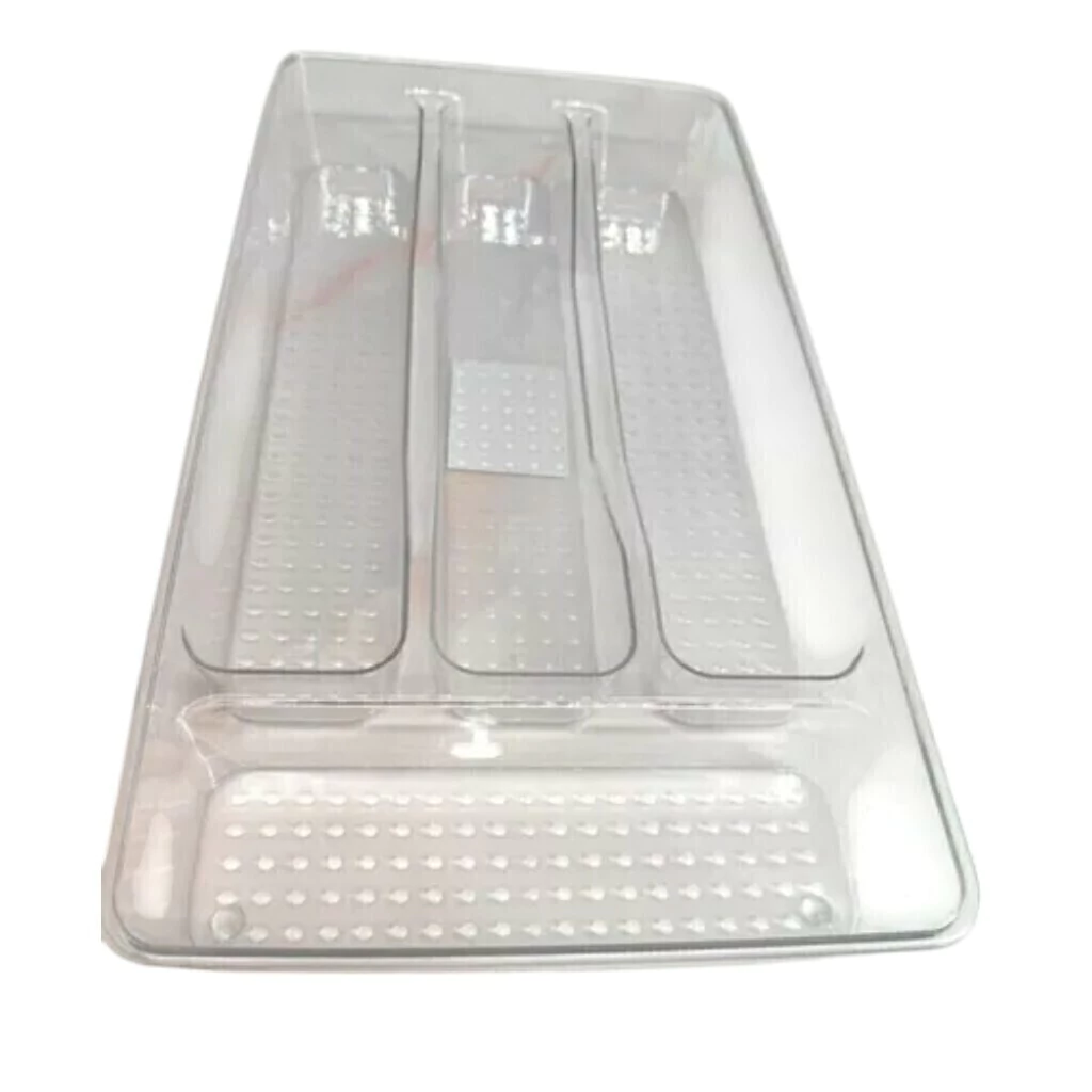 Mantén tus cubiertos y utensilios de cocina perfectamente organizados con este práctico y moderno cubiertero de acrílico, diseñado para optimizar el espacio en tus cajones o encimeras.