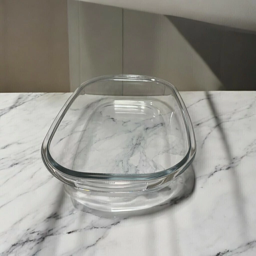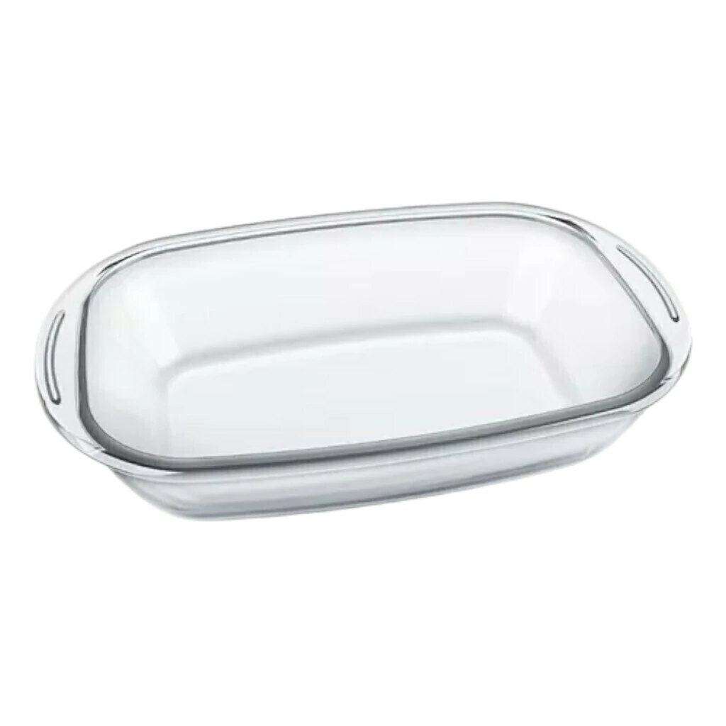 Hecha de vidrio templado, un tipo de vidrio que ha sido tratado térmicamente para aumentar su resistencia frente a golpes y cambios bruscos de temperatura. Su forma rectangular permite un uso eficiente del espacio en el horno o en la mesa. Su estilo limpio y transparente permite que los alimentos se vean atractivos al ser servidos.