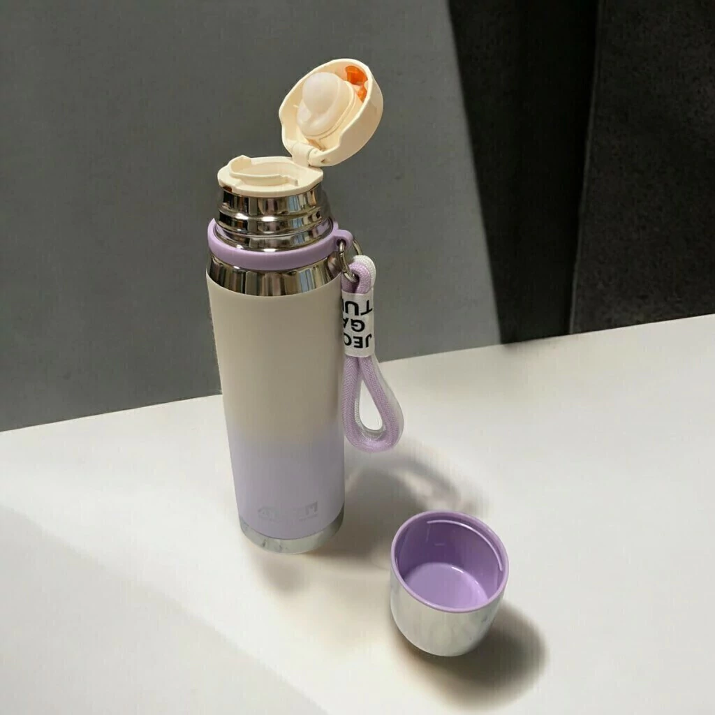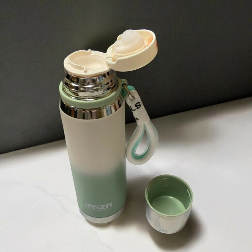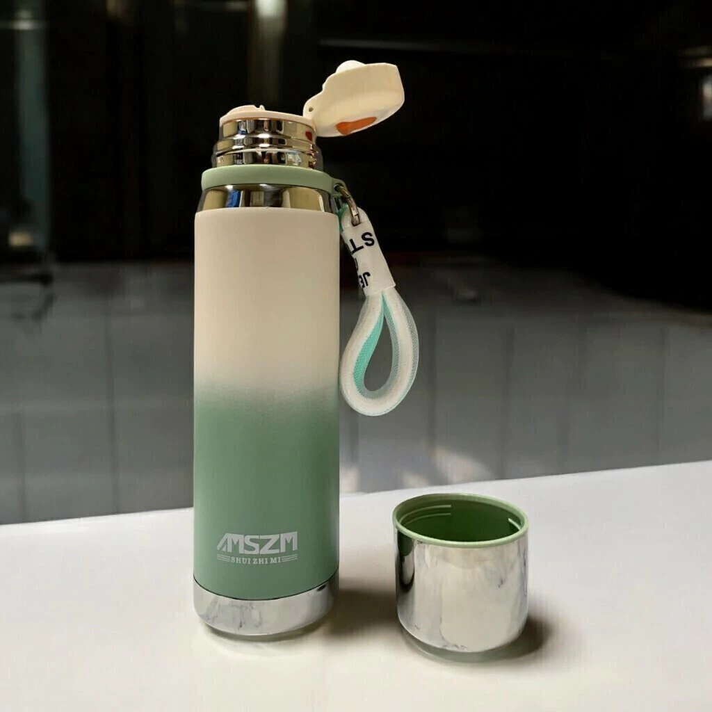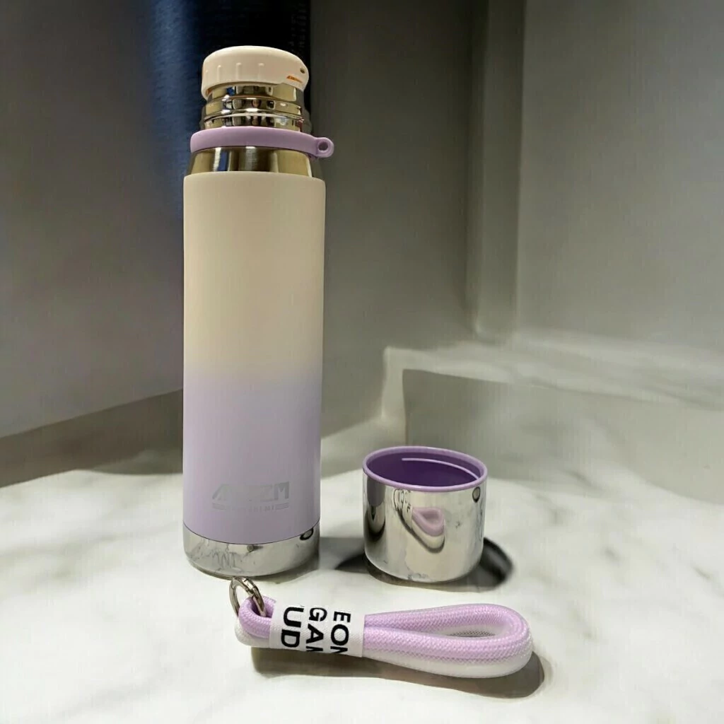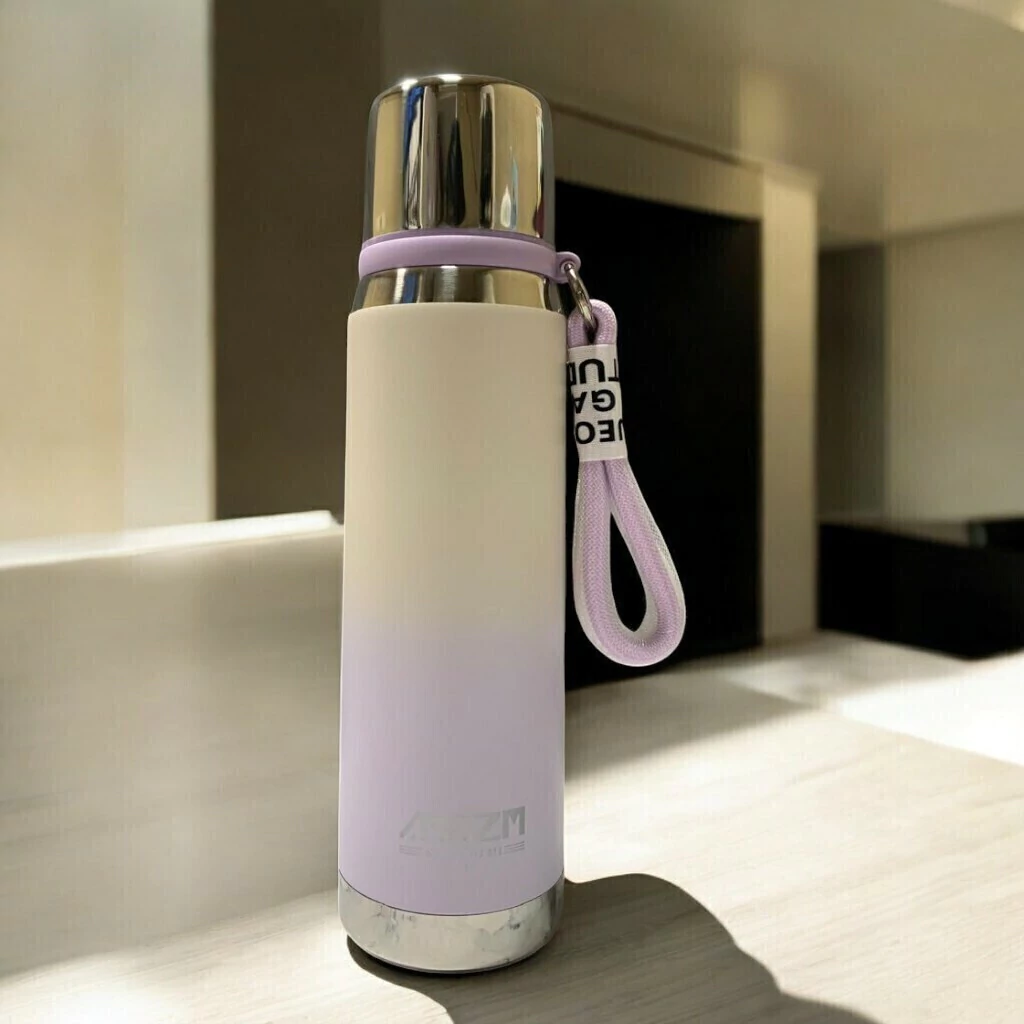 El acabado degradado le da un aspecto sofisticado y contemporáneo, haciéndola destacar frente a otras botellas térmicas convencionales. Los colores degradados pueden variar, desde tonos metálicos hasta colores brillantes y vibrantes, ideales para aquellos que buscan algo visualmente atractivo además de funcional.